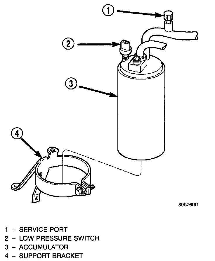 2. Install and tighten the low pressure cycling clutch switch on the accumulator fitting. The switch should be hand-tightened onto the accumulator fitting.