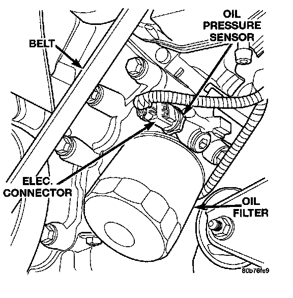 The 3-wire, solid-state engine oil pressure sensor (sending unit) is located in an engine oil pressure gallery above the oil filter.