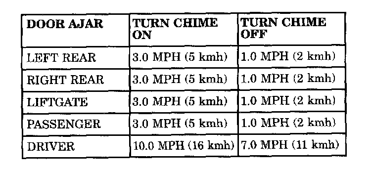 When the following messages are displayed the EVIC will send a chime request to the BCM. The BCM will respond with a series of chimes.