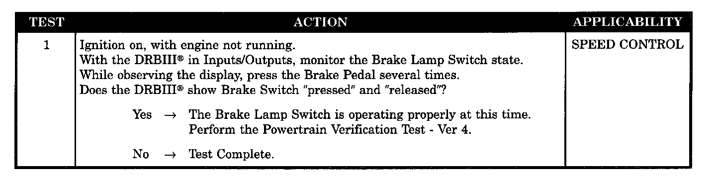 CHECKING BRAKE SWITCH OPERATION WITH NO DTC'S
