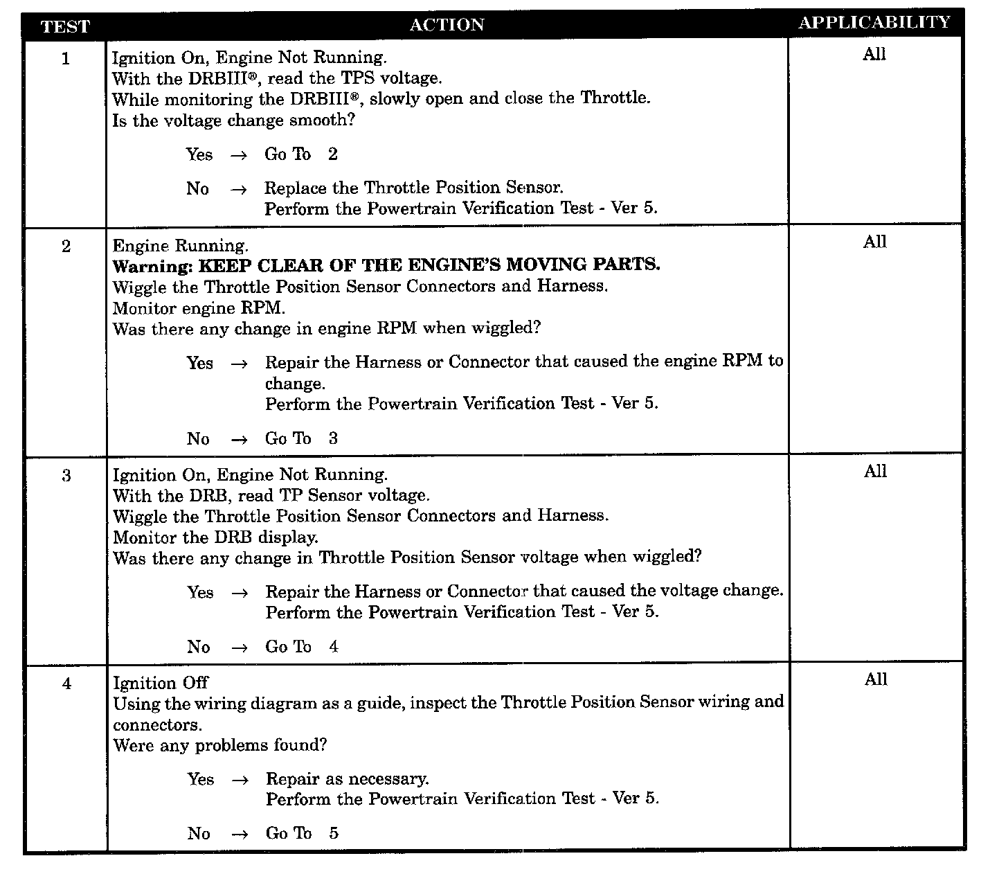 CHECKING THROTTLE POSITION SENSOR OPERATION WITH NO DTC'S