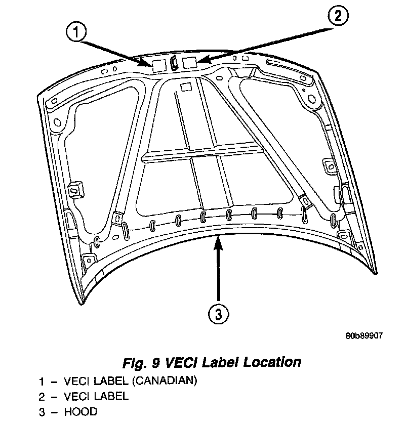 VEHICLE EMISSION CONTROL INFORMATION (VECI) LABELFig. 9 VECI Label Location: