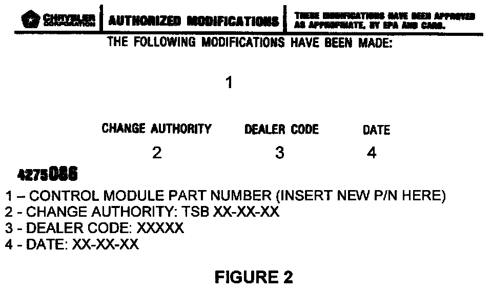 9. Type the necessary information on the "Authorized Software Update Label" pin 04669020 (Figure 1). Attach a label to the TCM (EATX), and if reprogramming was required, attach a label to the PCM (JTEC). Cover both labels with the clear plastic overlay.