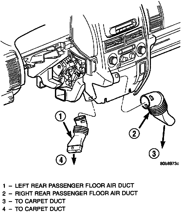 4. Reinstall the rear floor heat ducts to the center floor heat duct outlets. Air Duct