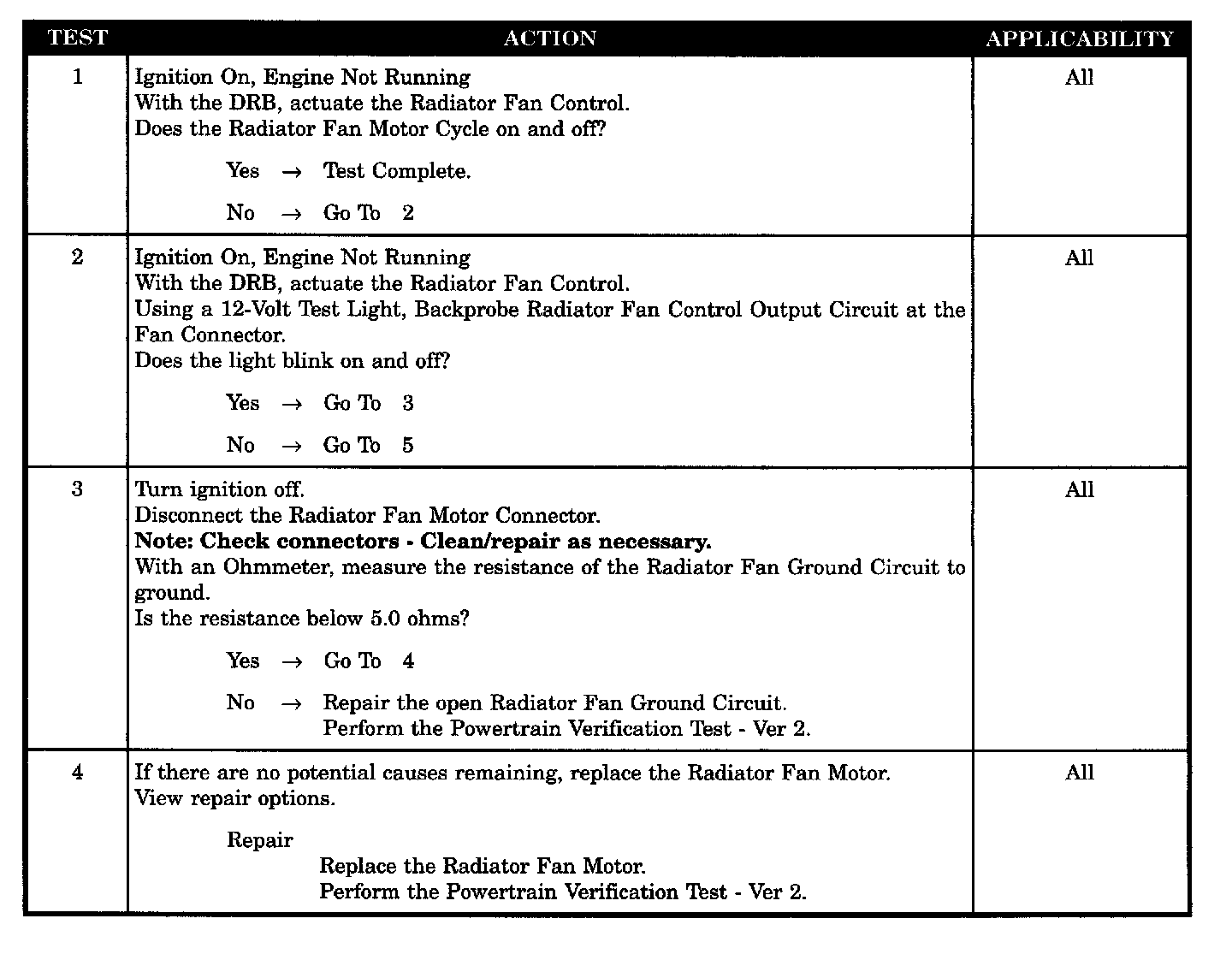 CHECKING RADIATOR FAN OPERATION WITH NO DTC'S
