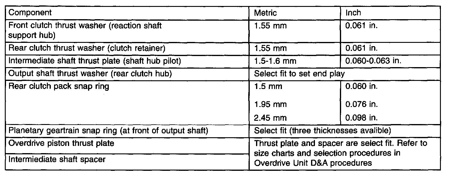 Thrust Washer/Spacer/Snap Ring Dimensions: