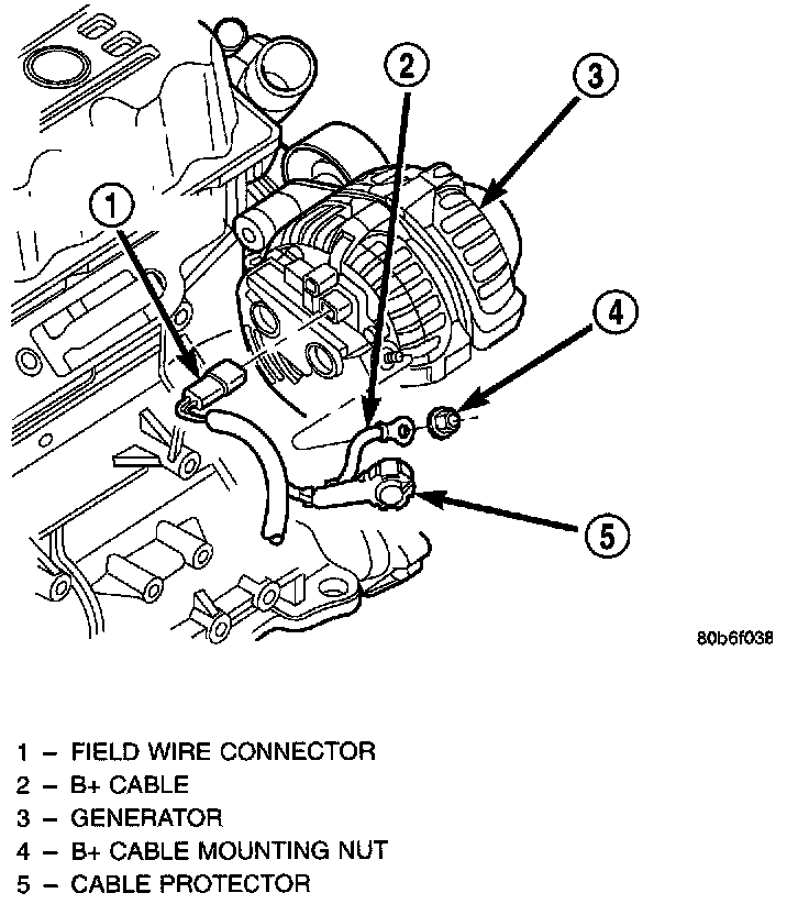 REMOVALWARNING: DISCONNECT NEGATIVE CABLE FROM BATTERY BEFORE REMOVING BATTERY OUTPUT WIRE (B+ WIRE) FROM GENERATOR. FAILURE TO DO SO CAN RESULT IN INJURY OR DAMAGE TO ELECTRICAL SYSTEM.