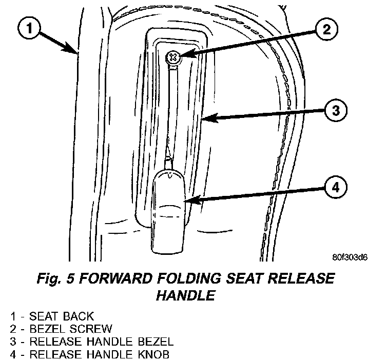 6. Using a trim stick C-4755 or equivalent, remove and discard the seat release handle knob. (Fig. 5)