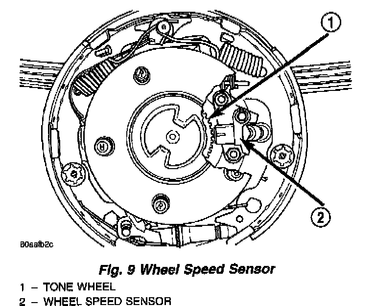6. If new sensor was installed, push cardboard spacer on sensor face against tone ring. Then tighten sensor bolt to 12-14 Nm (106-124 in. lbs.). Correct air gap will be established as tone ring rotates and peels spacer off sensor face.