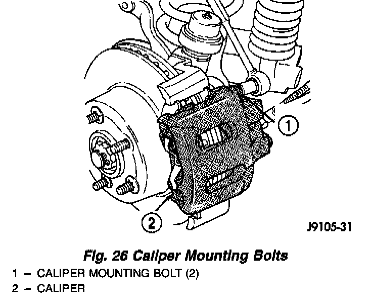 CAUTION: If new caliper bolts are being installed, or if the original reason for repair was a drag/pull condition, check caliper bolt length before proceeding. Bolts must not have a shank length greater than 67.6 mm (2.66 in.).
