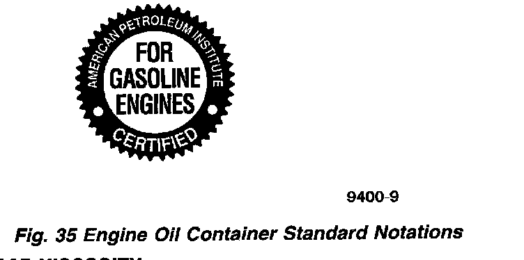 Standard engine oil identification notations have been adopted to aid in the proper selection of engine oil. The identifying notations are located on the label of engine oil plastic bottles and the top of engine oil cans (Fig. 35).