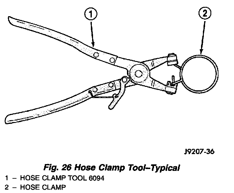 WARNING: CONSTANT TENSION HOSE CLAMPS ARE USED ON MOST COOLING SYSTEM HOSES. WHEN REMOVING OR INSTALLING, USE ONLY TOOLS DESIGNED FOR SERVICING THIS TYPE OF CLAMP, SUCH AS SPECIAL CLAMP TOOL (NUMBER 6094) SNAP-ON CLAMP TOOL (NUMBER HPC-20) MAY BE USED FOR LARGER CLAMPS. ALWAYS WEAR SAFETY GLASSES WHEN SERVICING CONSTANT TENSION CLAMPS.