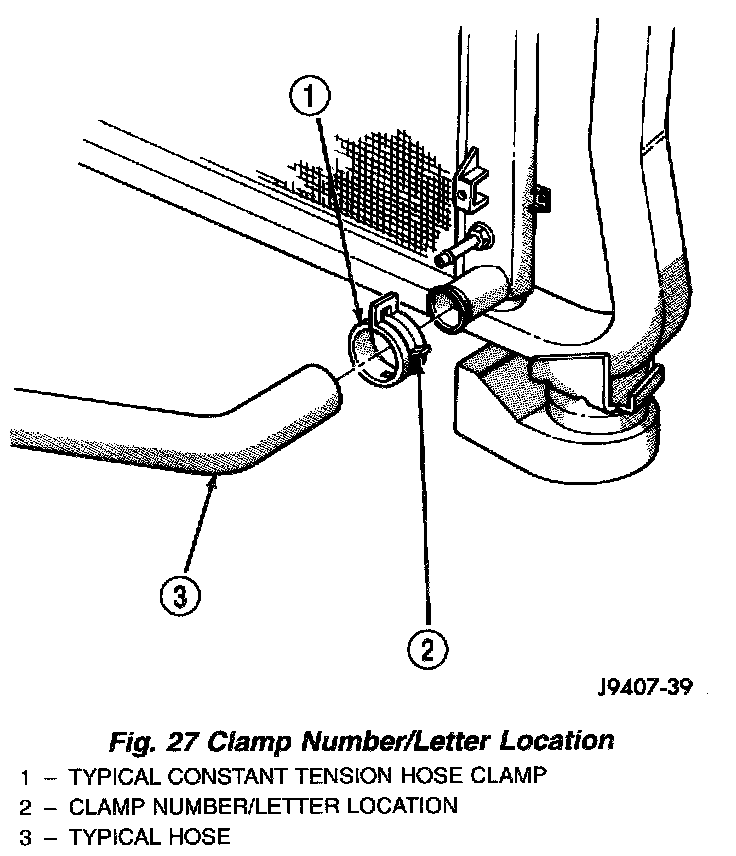 CAUTION: A number or letter is stamped into the tongue of constant tension clamps. If replacement is necessary, use only an original equipment clamp with matching number or letter.