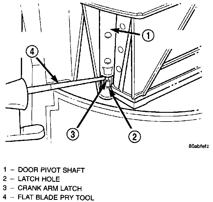 3. Insert a screwdriver into the latch hole of the defrost door pivot shaft to release the latch of the defrost door lever, and pull the lever out of the pivot shaft from the outside of the upper half of the heater-A/C housing.