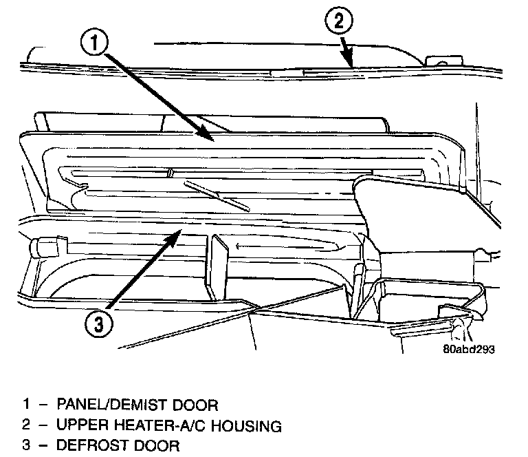 2. Remove the panel/demist door and lever from the upper heater-A/C housing.