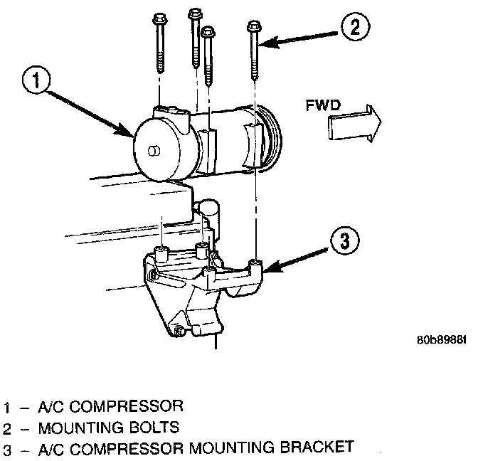 The compressor may be removed and repositioned without disconnecting the refrigerant lines or discharging the refrigerant system. Discharging is not necessary if servicing the compressor clutch or clutch coil, the engine, the cylinder head, or the generator.WARNING: REVIEW THE WARNINGS AND CAUTIONS BEFORE PERFORMING THE FOLLOWING OPERATION.
