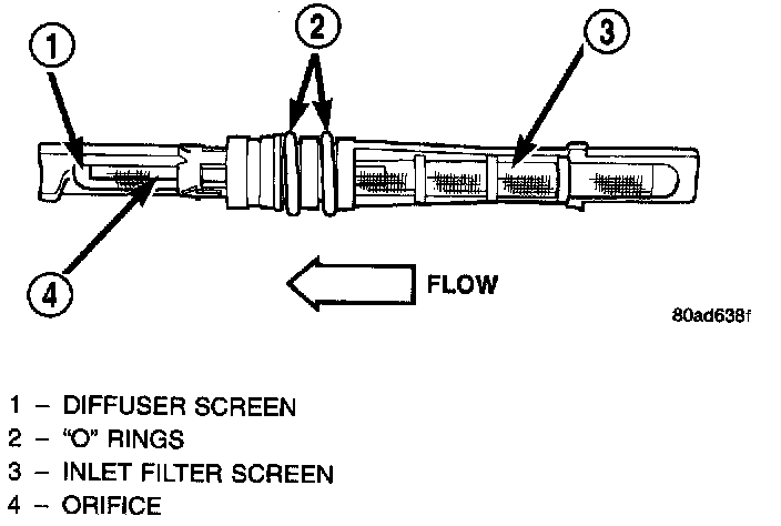 The orifice tube is located in the end of the liquid line that is closest to the condenser outlet tube.
