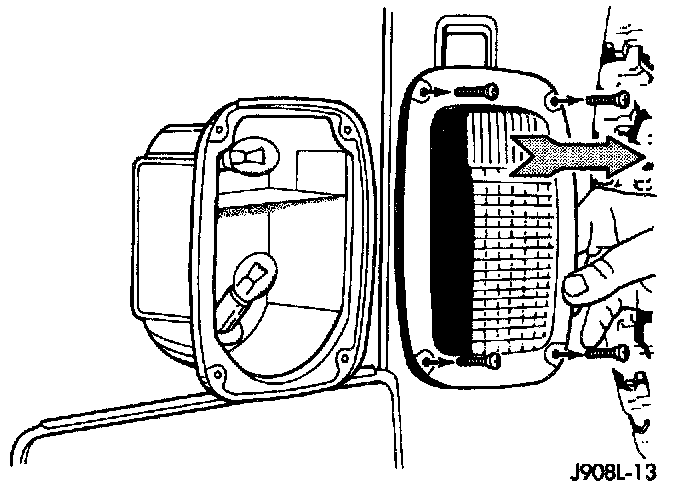 1. Remove the screws attaching the lens to the tail lamp housing.