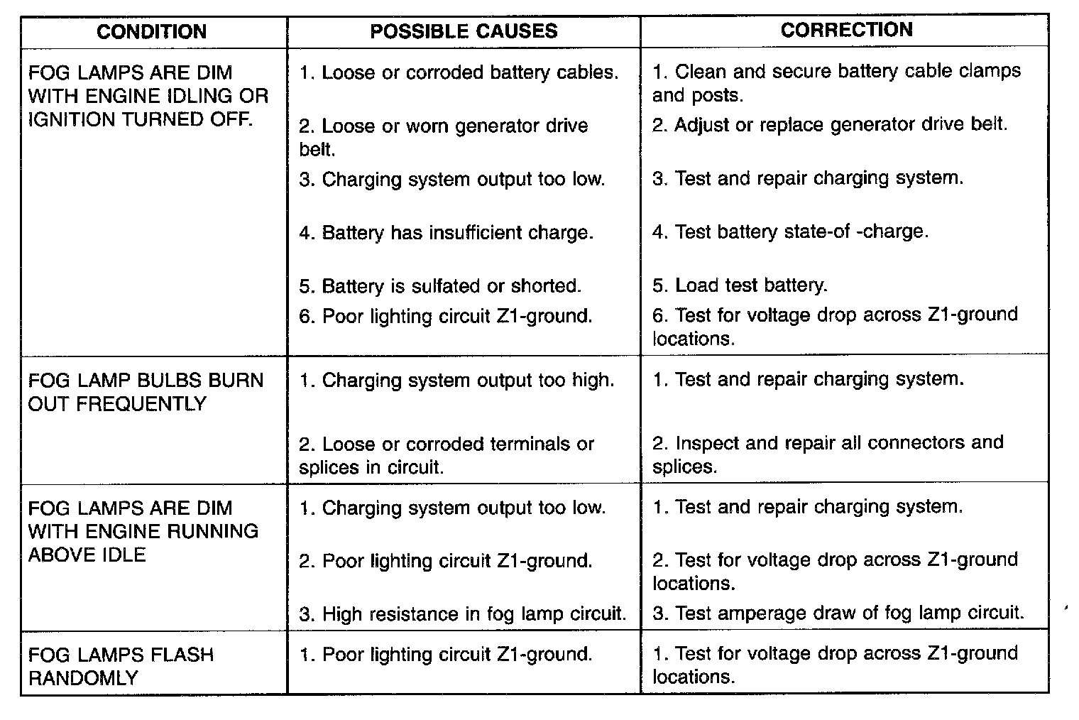 When a vehicle experiences problems with the headlamp system, verify the condition of the battery connections, fuses, charging system, headlamp bulbs, wire connectors, relay, high beam switch, dimmer switch, and headlamp switch.