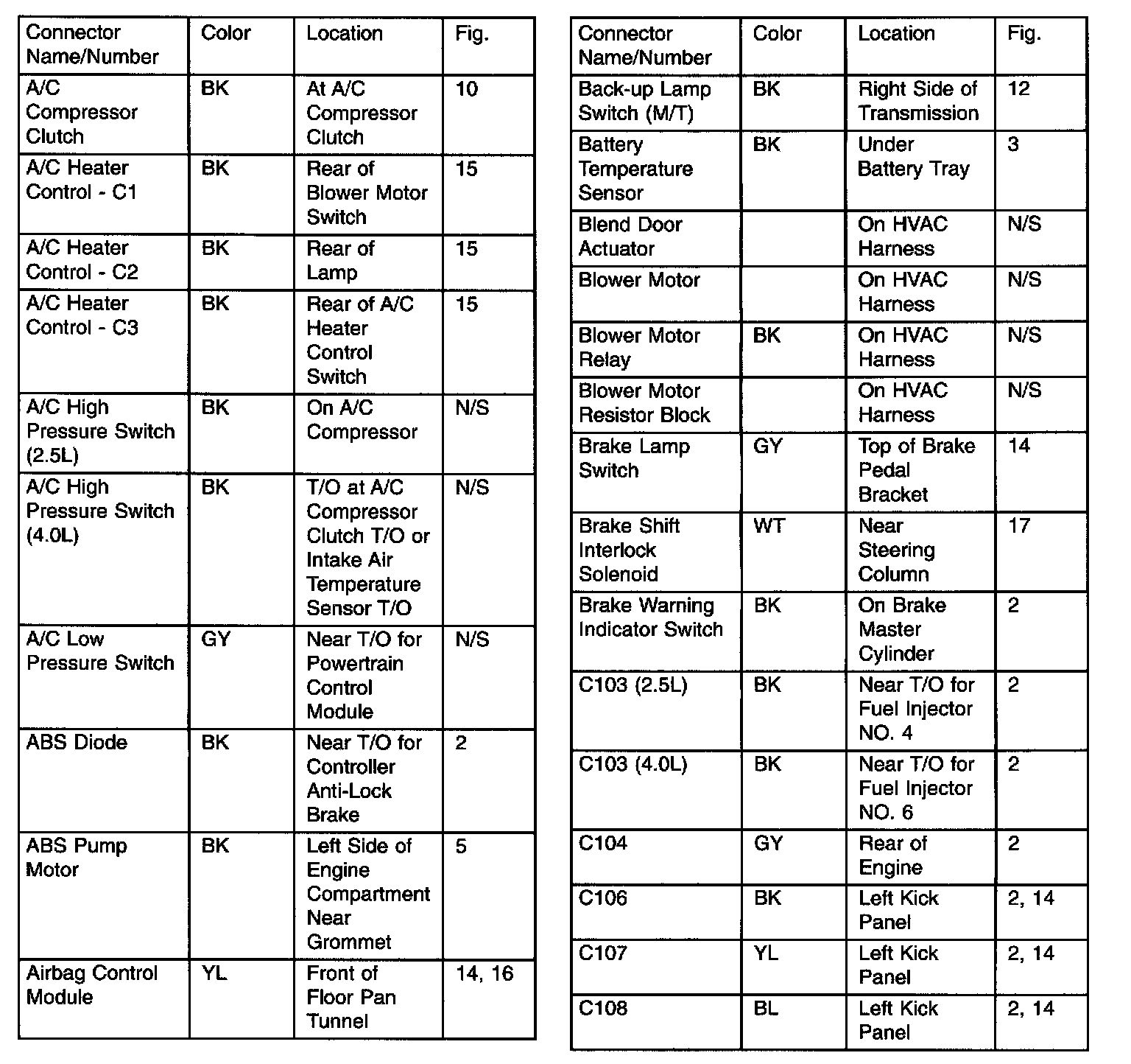Connector/Ground Locations Component Index: