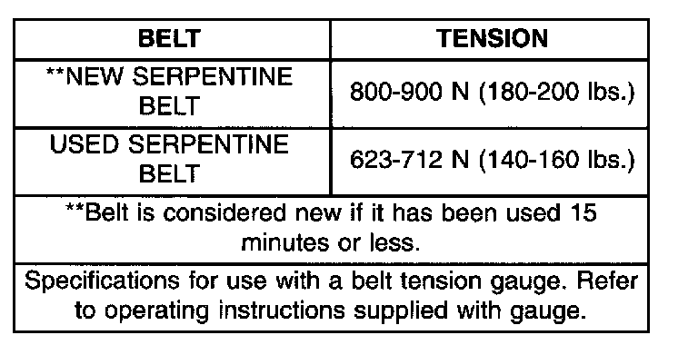 2. Install belt tension gauge C-4162 and compare reading with those in the accessory drive belt tension specification chart.