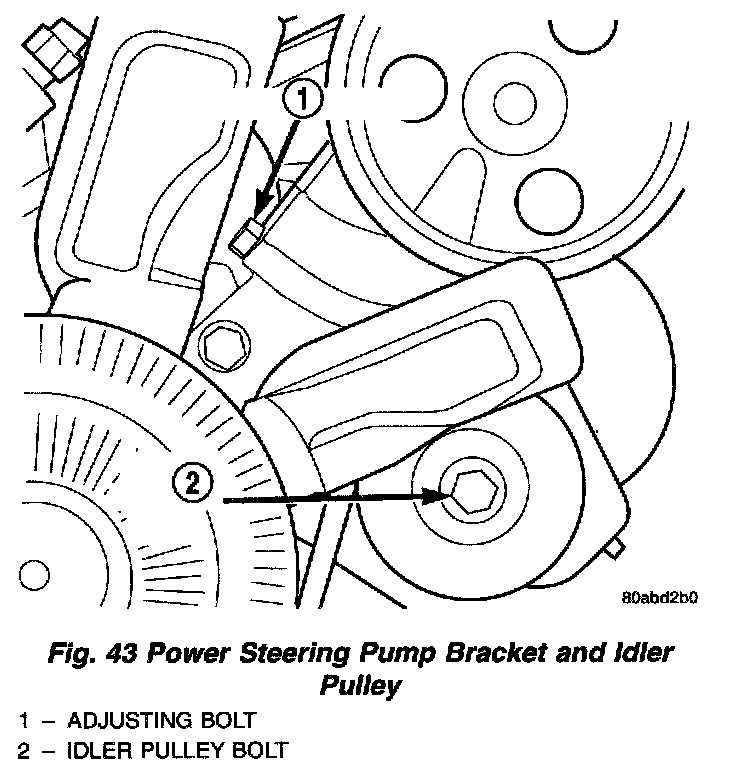 4. Adjust tension adjusting bolt (Fig. 43) until reading is within specification.