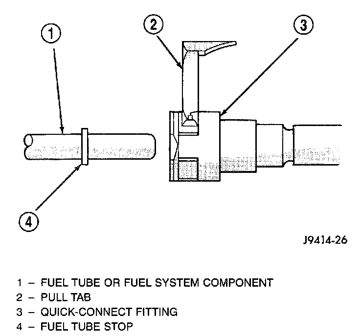 f. After disconnection, locking fingers will remain within quick-connect fitting at end of fuel line.