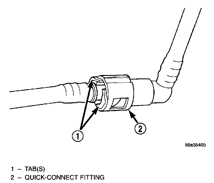 Also refer to Fuel Tubes/Lines/Hoses and Clamps.Different types of quick-connect fittings are used to attach various fuel system components, lines and tubes. These are: a single-tab type, a two-tab type or a plastic retainer ring type. Safety latch clips are used on certain components/lines. Certain fittings may require use of a special tool for disconnection.