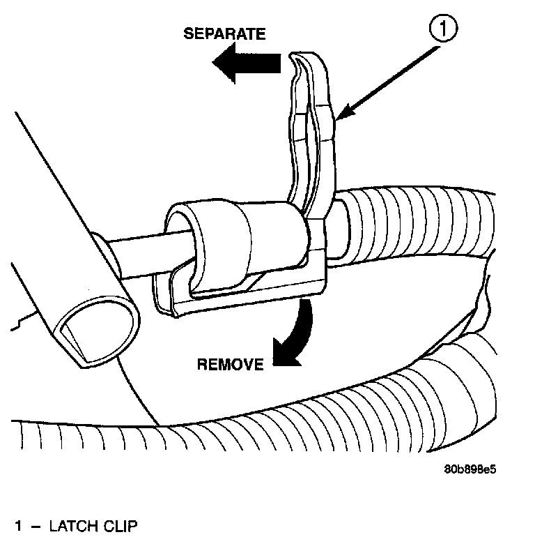 7. Latch Clip Equipped: Install latch clip (snaps into position). If latch clip will not fit, this indicates fuel line is not properly installed to fuel rail (or other fuel line). Recheck fuel line connection.