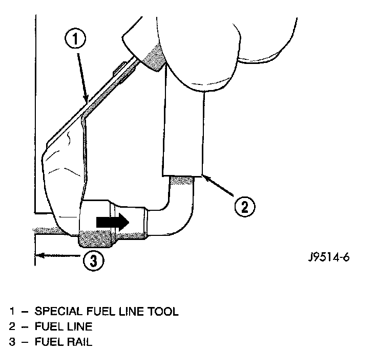 e. With special tool still inserted, pull fuel line from fuel rail.