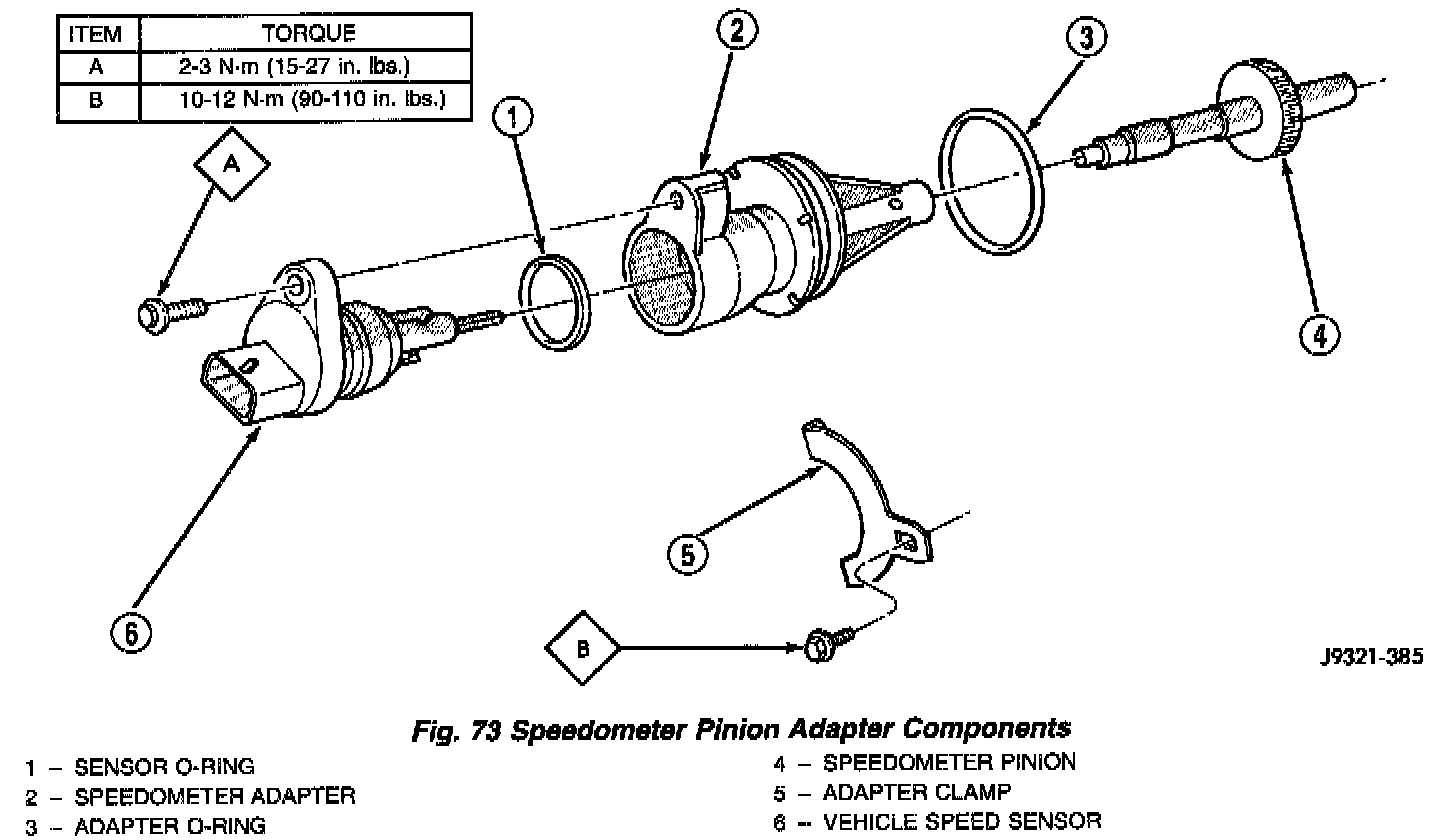 2. Install new O-rings on speed sensor and speedometer adapter if necessary (Fig. 73).