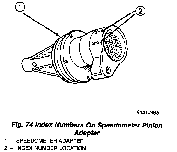 7. Note index numbers on adapter body (Fig. 74). These numbers will correspond to number of teeth on pinion.