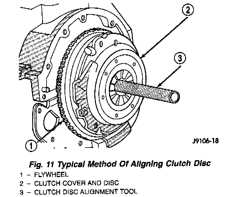 6. Insert clutch alignment tool in clutch disc (Fig. 11).
