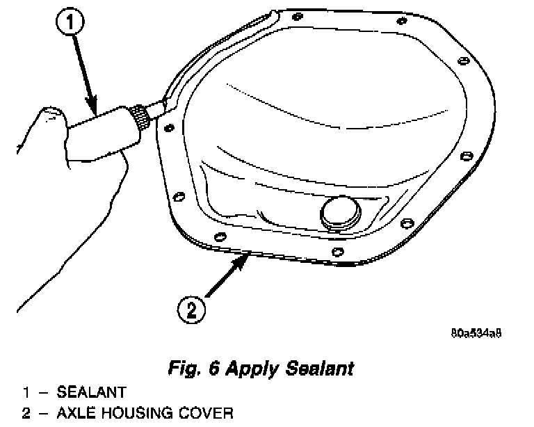 6. Apply a bead of Mopar Silicone Rubber Sealant, or equivalent, to the housing cover (Fig. 6).
