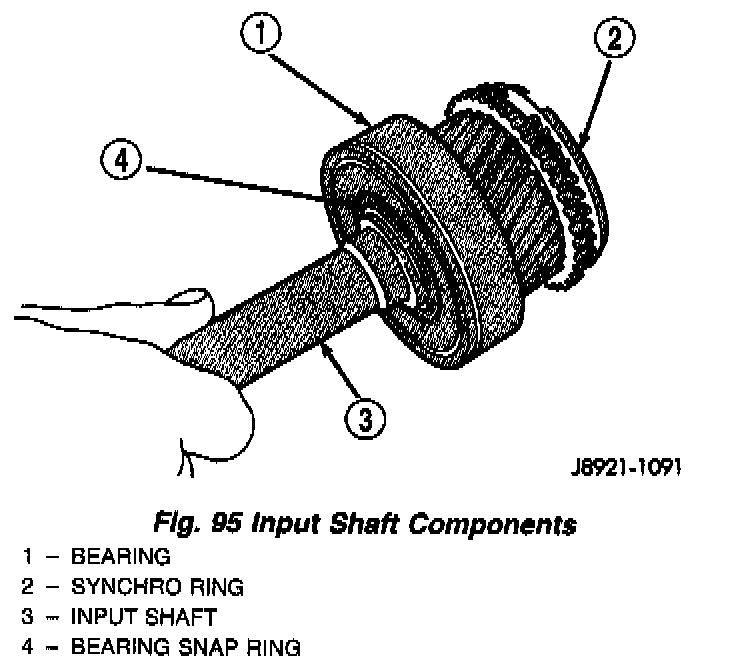 4. Remove the fourth gear synchronizer ring from the input shaft (Fig. 95).