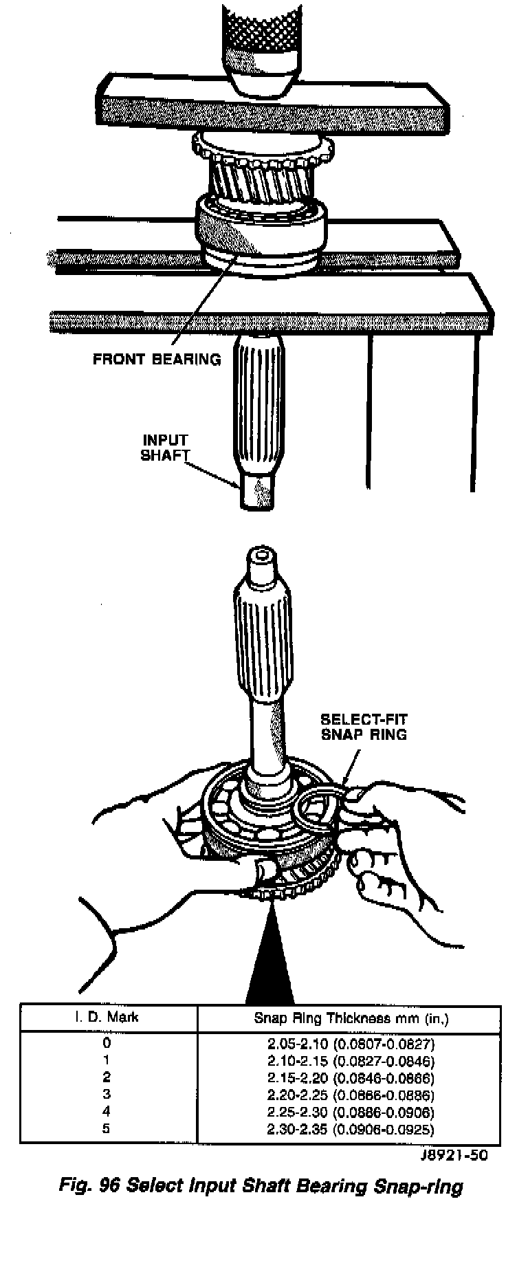 3. Select the thickest snap-ring that will fit into the snap-ring groove of the input shaft (Fig. 96).