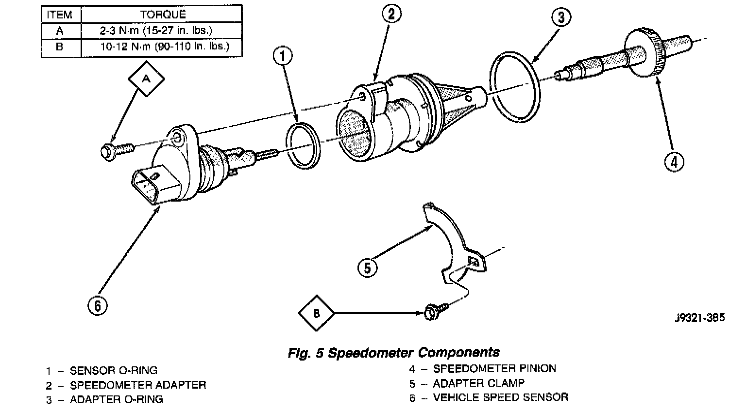 2. Install new O-rings on speed sensor and speedometer adapter (Fig. 5), if necessary.