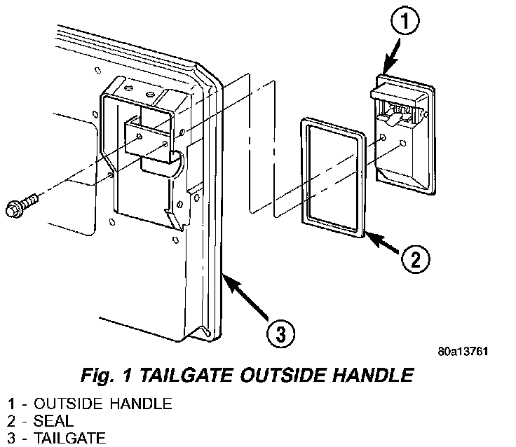 2. Remove the screws attaching the outside handle to the tailgate (Fig. 1).