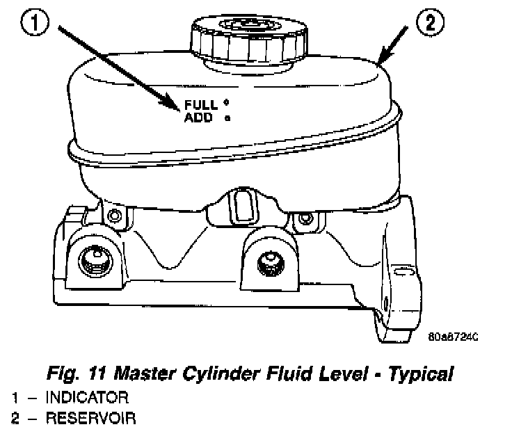 The fluid fill level is indicated on the side of the master cylinder reservoir.