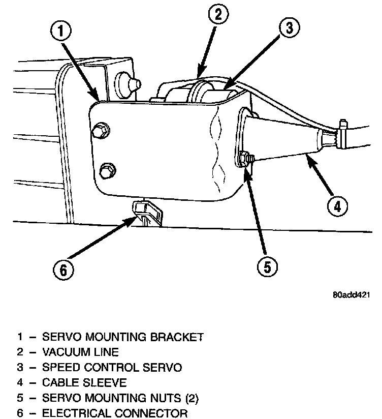5. Remove 2 mounting nuts holding servo cable sleeve to bracket.