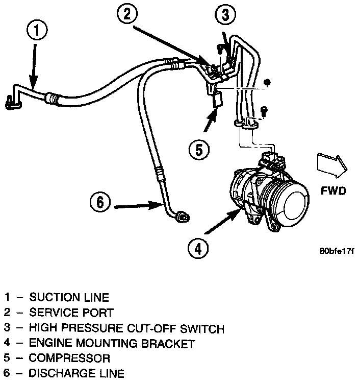 NOTE: If a replacement compressor is being installed, be certain to check the refrigerant oil level. Use only refrigerant oil of the type recommended for the compressor in the vehicle.