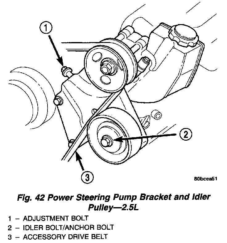 2. Loosen idler pulley bolt (Fig. 42).