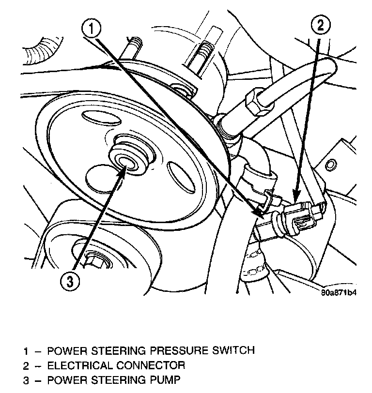A pressure sensing switch is included in the power steering system (mounted on the high- pressure line). This switch will be used only on vehicles equipped with a 2.5L engine and power steering.