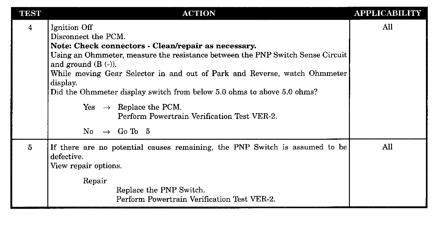 Checking Park/Neutral Position Switch