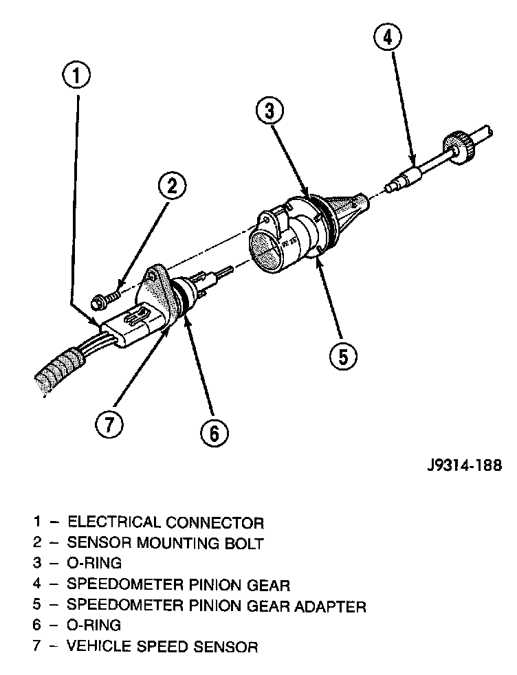 4. Remove sensor (pull straight out) from speedometer pinion gear adapter. Do not remove gear adapter from transmission.