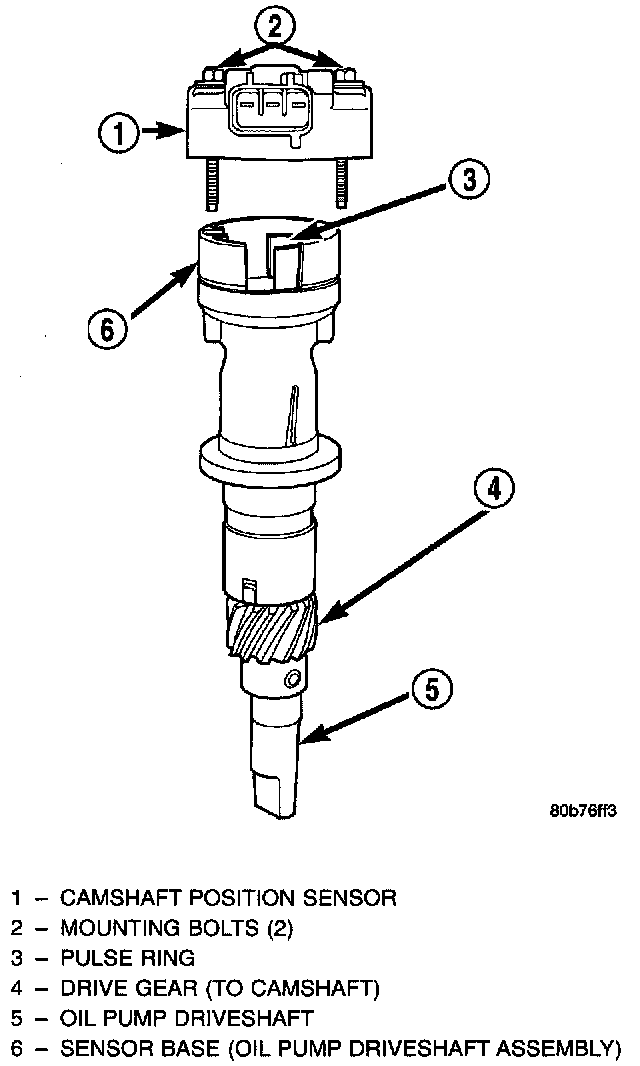 6. Install sensor to oil pump drive. After installation, the CMP sensor should face rear of engine .