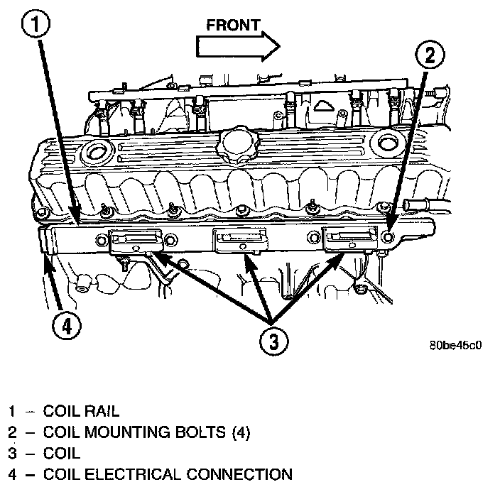 1. The coil is bolted directly to the cylinder head, One electrical connector (located at rear of coil) is used for all three coils.