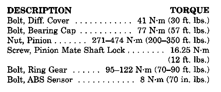 Tightening Specifications Chart