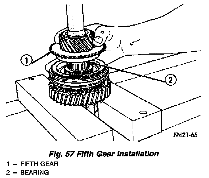 12. Install fifth gear on shaft and onto bearing (Fig. 57).
