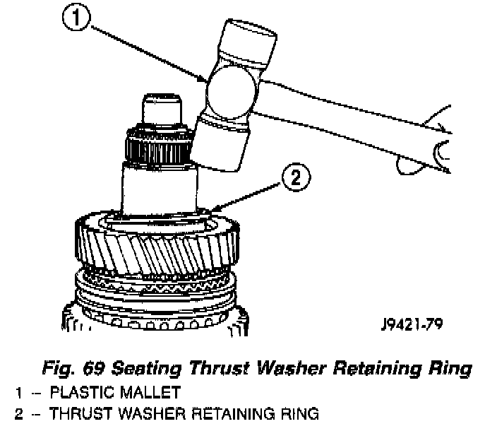 28. Seat thrust washer retaining ring with plastic mallet (Fig. 69).